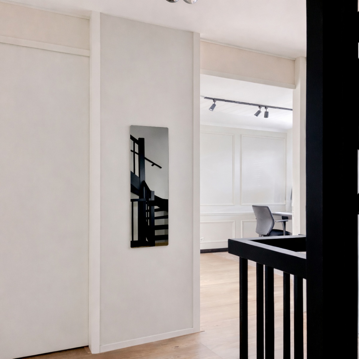 Haben Sie einen schmalen, dunklen Korridor in Ihrer Wohnung? Dann ist ein schmaler Spiegel ideal als Flurspiegel an der kurzen Seite. Der Spiegel schafft die Illusion von mehr Raum und reflektiert gleichzeitig das Licht.