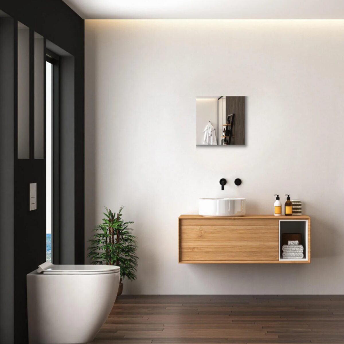 Zur Auswahl stehen rechteckige, quadratische oder runde Toilettenspiegel. Oder vielleicht eignet sich Ihr Toilettenraum gut für einen Bogenspiegel. Eine weitere Option wäre es, einen Toilettenspiegel in zwei Teilen zu bestellen und sie so zu montieren, dass es aussieht, als würden sie hinter dem Waschbecken durchlaufen.